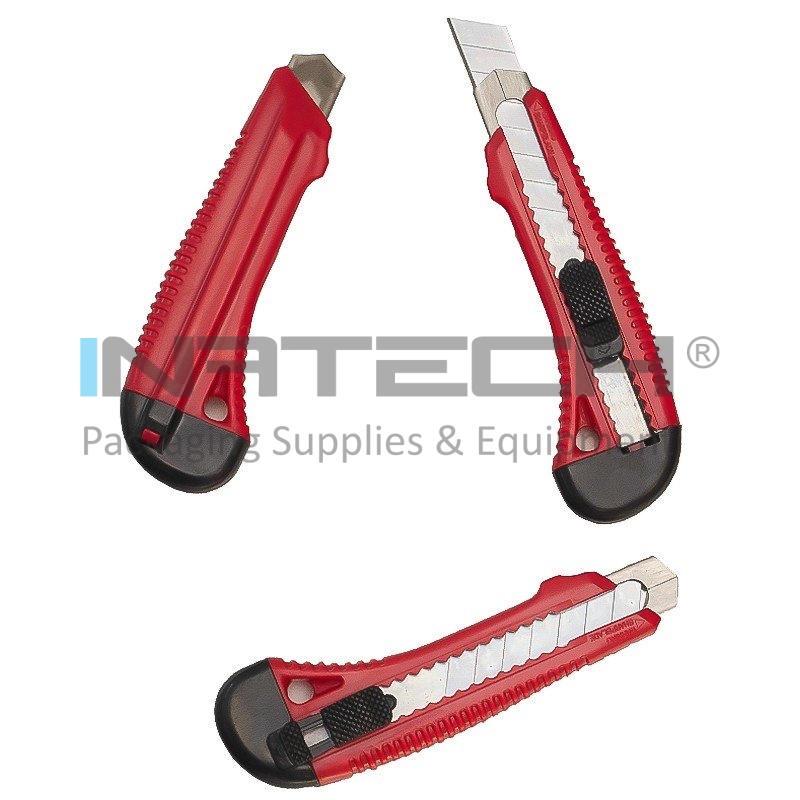 Cuttere pentru taierea hartiei cu sistem automat de blocare ce sunt ideale atat pentru uz intens, cat si mediu. Sunt prevazute cu lama metalica bine ascutita, cu latimea de 18 mm si grosimea de 0,4 mm. Zona de prindere este comoda, iar sina in care culiseaza lama este din metal rezistent (model cutter metalic).