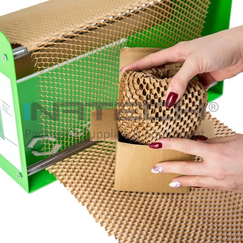 Dispenserul pentru hartie kraft este ideal pentru industrii, precum cea a cosmeticelor, a sticlei si a ceramicii, decoratiunilor (lampi, figurine, sfesnice), jucariilor, florilor si nu numai. Dispenserul este adaptat la hartie Honeypack cu latimile: 40 cm si 50 cm. Acest sistem este potrivit pentru uz personal, dar si pentru micile businessuri care ambaleaza ocazional produse si care au un spatiu de lucru limitat.