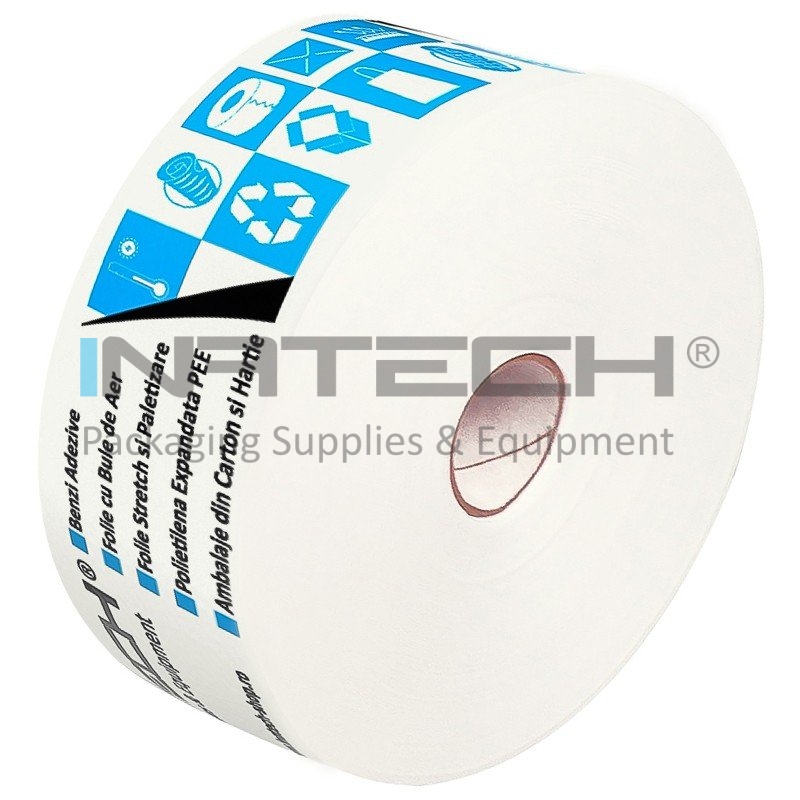 Cutiile de carton, impreuna cu aceste benzi, sunt complet reciclabile. Utilizarea acestora cu ajutorul dispozitivelor speciale accelereaza procesul de ambalare cu 20%.