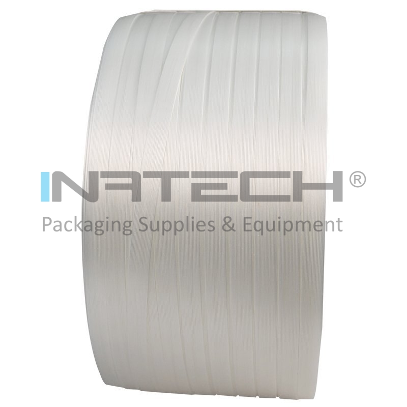 Structura sa compozita, formata din straturi paralele de fire poliesterice acoperite cu polipropilena, confera benzii o rezistenta remarcabila la abraziune, chimicale si factori de mediu. Acest design o face ideala pentru legarea materialelor cu suprafete dure sau colturi ascutite, precum si pentru aplicatii care necesita flexibilitate si durabilitate. Culoarea alba neutra se integreaza perfect intr-o varietate de medii, mentinand un aspect profesional.
