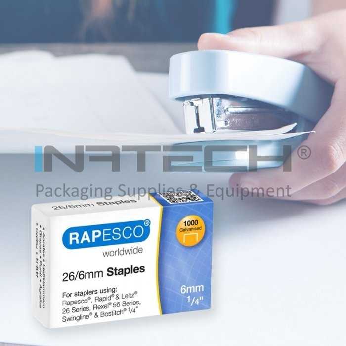 Capsele Rapesco 26/6 mm sunt fabricate din otel galvanizat de inalta calitate, oferind o capsare precisa si durabila la fiecare utilizare.