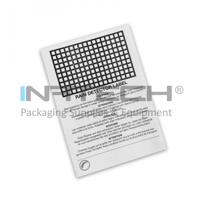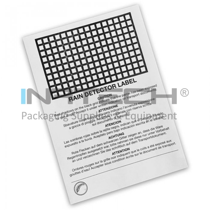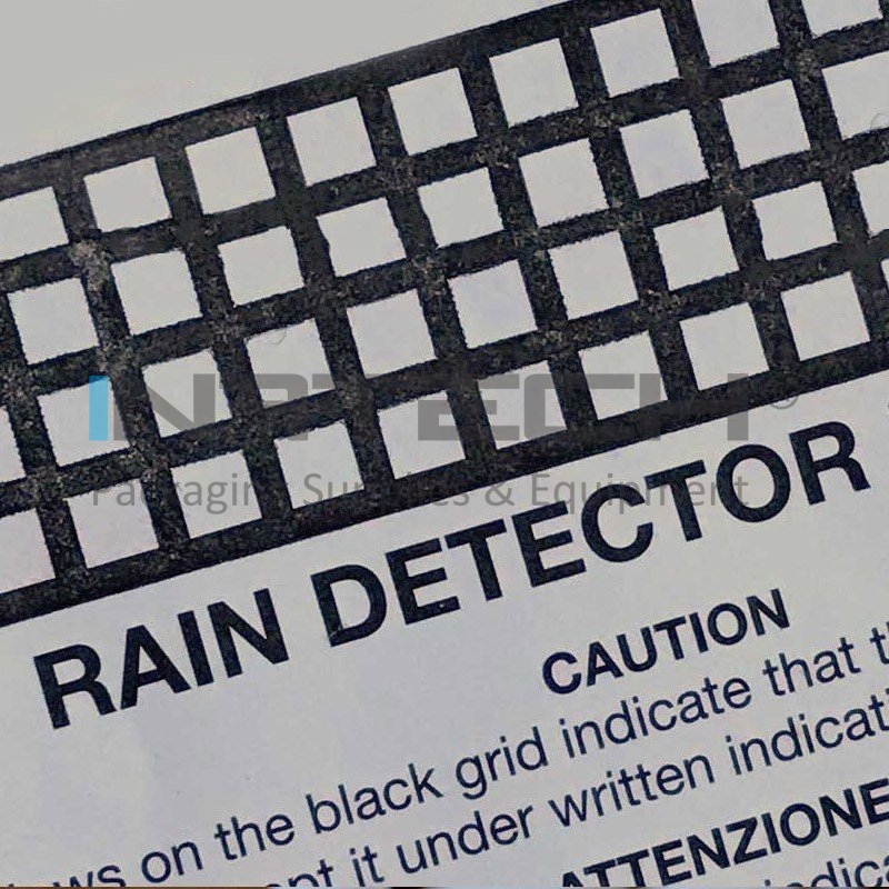 Eticheta Detector De Ploaie indica daca bunurile sau produsele au venit in contact cu picaturile de ploaie sau lichide pe timpul depozitarii sau transportului.