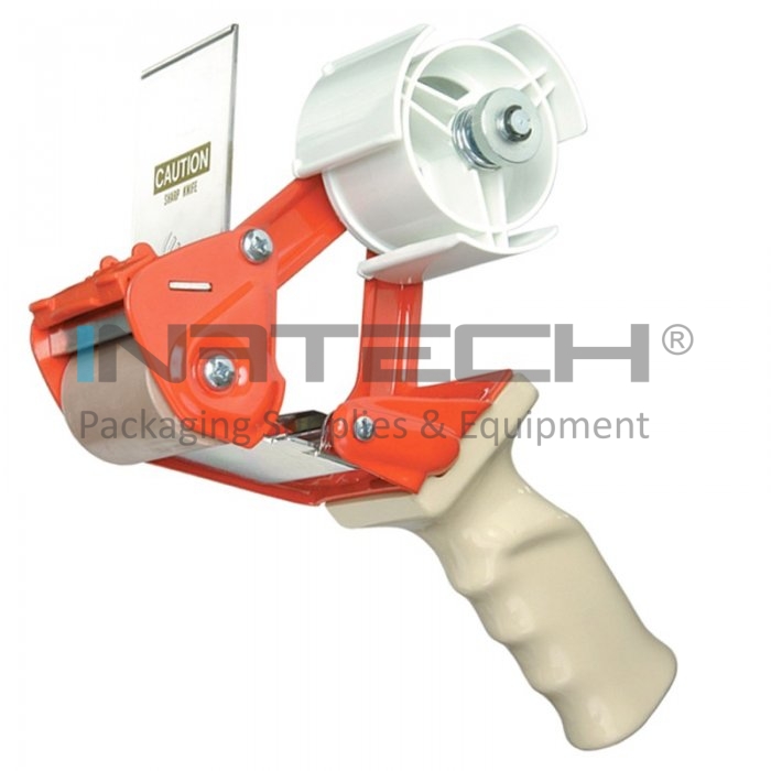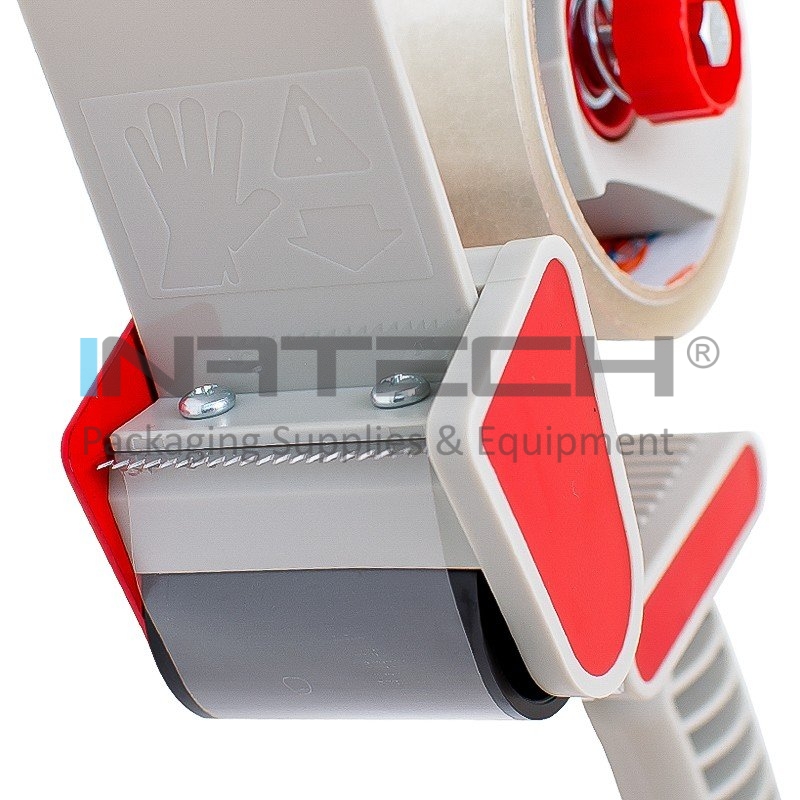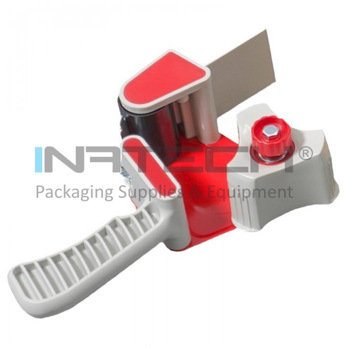 • Dispenser utilizat pentru banda adeziva din plastic cu maner si lama pentru a taia banda;