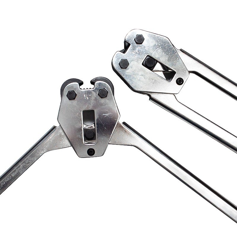 Acest cleste pentru legat banda PP se utilizeaza impreuna cu setul de capse metalice de 12/16 mm.