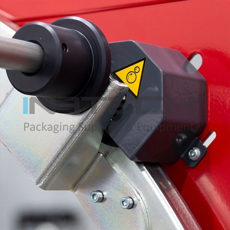 Aceasta masina de ambalare automata este destinata impachetarii coletelor cu dimensiuni circulare (anvelope, tuburi, cablaje etc) datorita rolelor incorporate in masa de lucru.