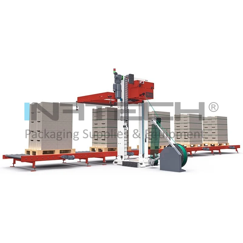 Masina Automata Pentru Legarea Orizontala A Paletilor este proiectata pentru linii industriale si de productie, precum si pentru linii automate de ambalare.Masina automata de legat paleti orizontala este destinata fixarii sigure a marfurilor paletizate sau a produselor libere, contribuind la stabilitate si eficienta crescuta in procesul de ambalare si transport. Poate fi integrata rapid in majoritatea fluxurilor industriale existente.
