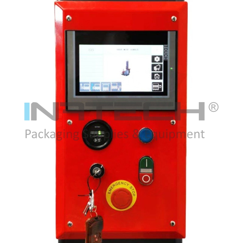 Robot Paletizare 600 A este o masina de paletizat folosita pentru infoliat paleti de orice forma, greutate si dimensiune. Este o masina de paletizat autopropulsata, alimentata cu baterii, proiectata pentru infasurarea incarcaturilor paletizate de orice forma, greutate si dimensiune folosind folie intinsa. Reglarea tensiunii filmului extensibil are loc printr-un ambreiaj mecanic reglabil manual de catre operator.