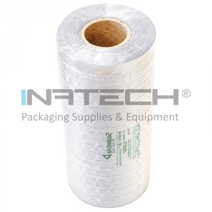 Rola film pentru masina ambalat New Air Express este transparenta, de culoare alba si se produce la doua dimensiuni, 40 cm latime, respectiv 80 cm latime. Poate avea lungimi diferite, 762 m, 457 m, 610 m, 579 m, lungimea unei foi de protectie fiind de 32 cm (bucata dintre perforatie, unde se rupe folia).